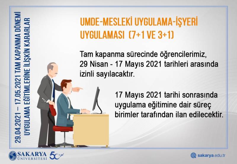 Rektörlükte yapılan toplantı sonucu, pandemiden dolayı kapanma tedbirleri kapsamında Staj ve UMDE ile ilgili aşağıdaki kararlar alınmıştır: