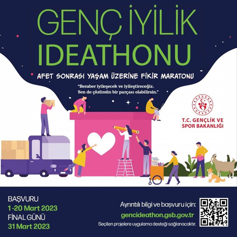 6 Şubat 2023 tarihinde Kahramanmaraş'ın Pazarcık ve Elbistan ilçelerinde meydana gelen ve 11 ilimizde etkili olan deprem afeti sonrasında ortaya çıkan ihtiyaç ve iyileştirme alanlarına yönelik çözümler konusunda gençlerin gözlemledikleri sorunları, kendi bakış açıları ile ifade etmeleri ve sorunlara yönelik çözüm önerilerini sunmaları amacıyla "Genç İyilik Ideathonu" konulu fikir yarışması düzenlenmektedir.