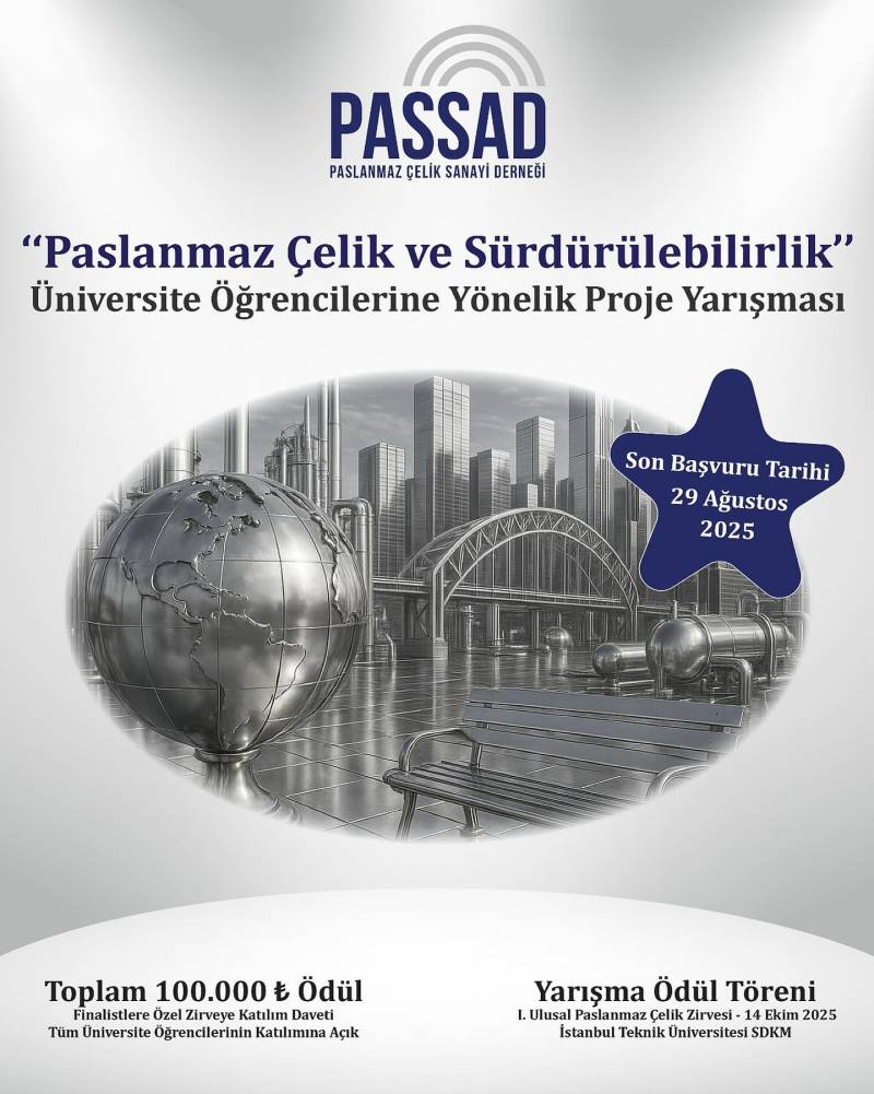 PASSAD Paslanmaz Çelik Sanayi Derneği olarak üniversite öğrencilerine yönelik düzenlediğimiz “Paslanmaz Çelik ve Sürdürülebilirlik” temalı proje yarışmasına başvurular devam ediyor.
