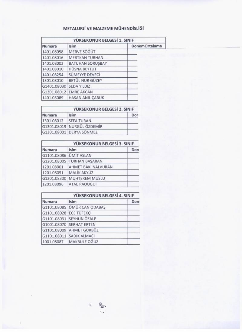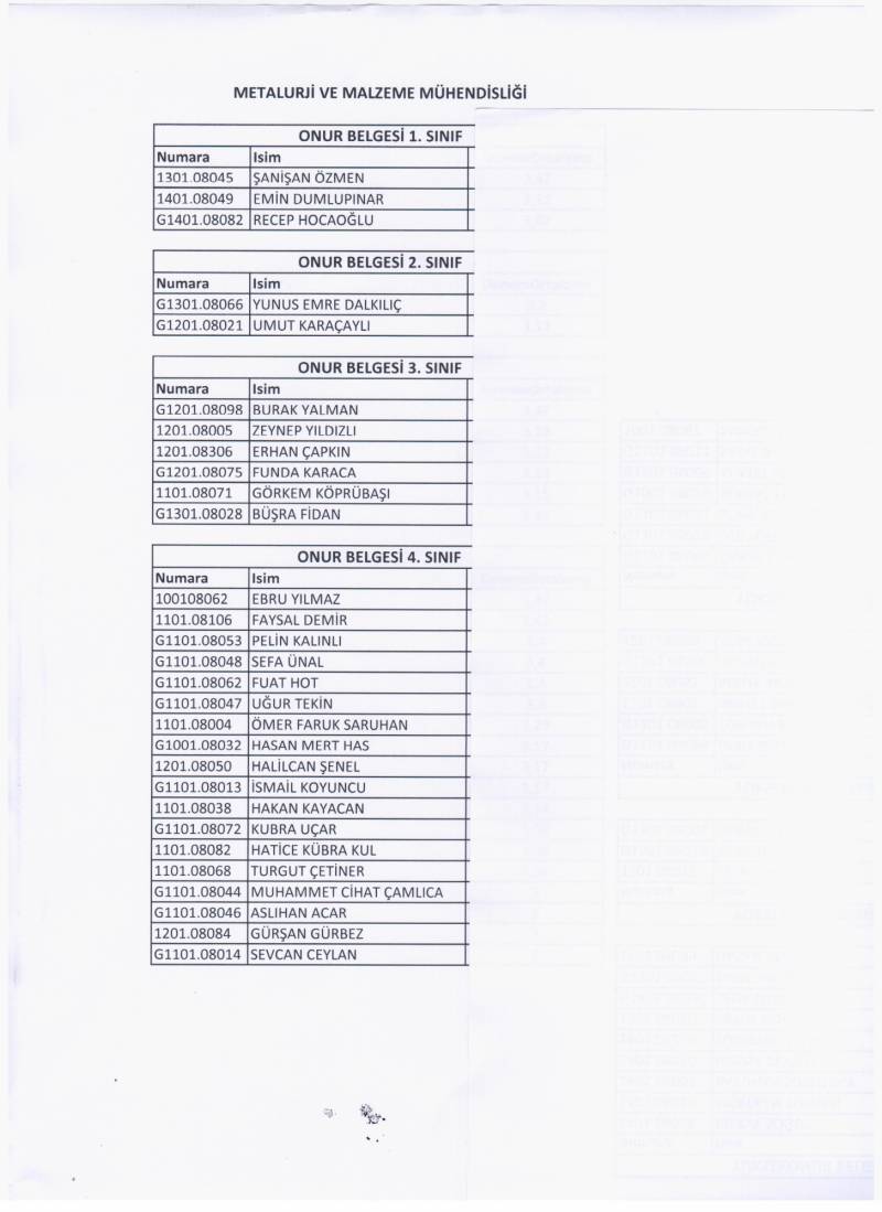 2014-2015 Eğitim Öğretim yılı Onur ve Yüksek Belgeleri Bölüm Sekreterliğinden dağıtılacaktır.
